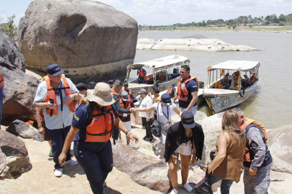 Posteriormente, la delegación se adentró en la majestuosidad del Río Orinoco, quienes, durante la navegación, conocieron dos puntos focales emblemáticos: La Piedra del Medio y el imponente estribo norte del Puente Angostura, escenarios que resaltan el potencial paisajístico de la región.
