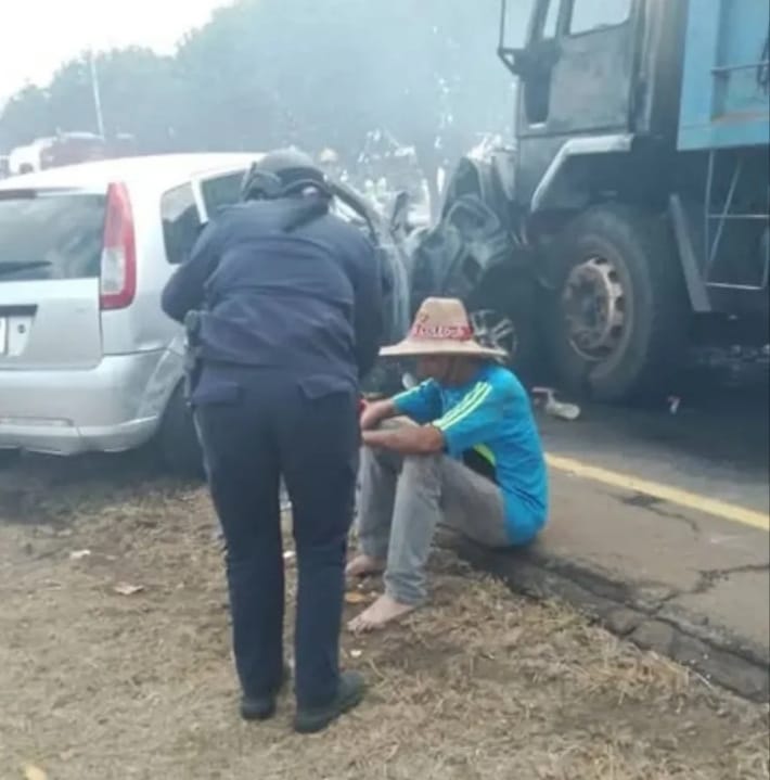 La escena del accidente mostró la magnitud del impacto, con vehículos esparcidos a lo largo de la arteria vial:
