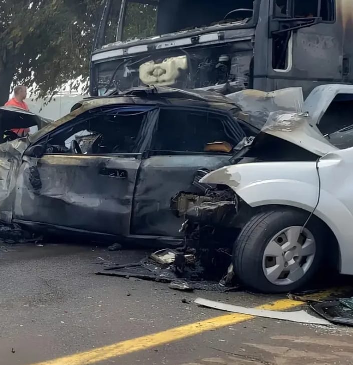 En el epicentro del choque, las llamas se propagaron con rapidez. Dos de los vehículos, un Chevrolet Impala (placa AA5448SU) y un Chevrolet Optra, fueron consumidos totalmente por el fuego. Lamentablemente, el conductor del Impala no logró abandonar la unidad, falleciendo calcinado en el lugar. Hasta el cierre de esta edición, su identidad no ha sido confirmada por las autoridades forenses.